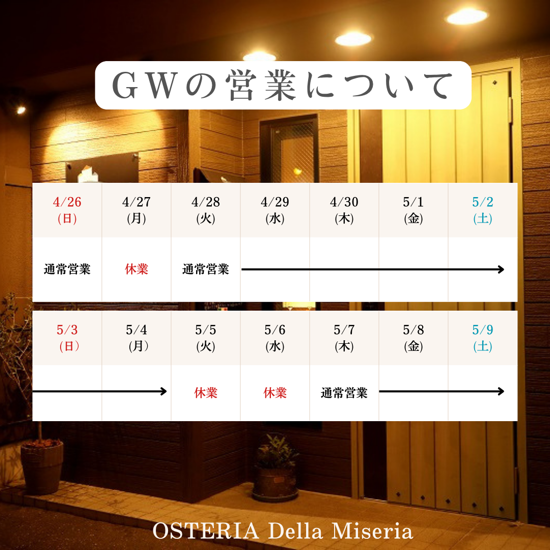| 店舗名 | OSTERIA DELLA Miseria(オステリア デッラ ミゼリア) |